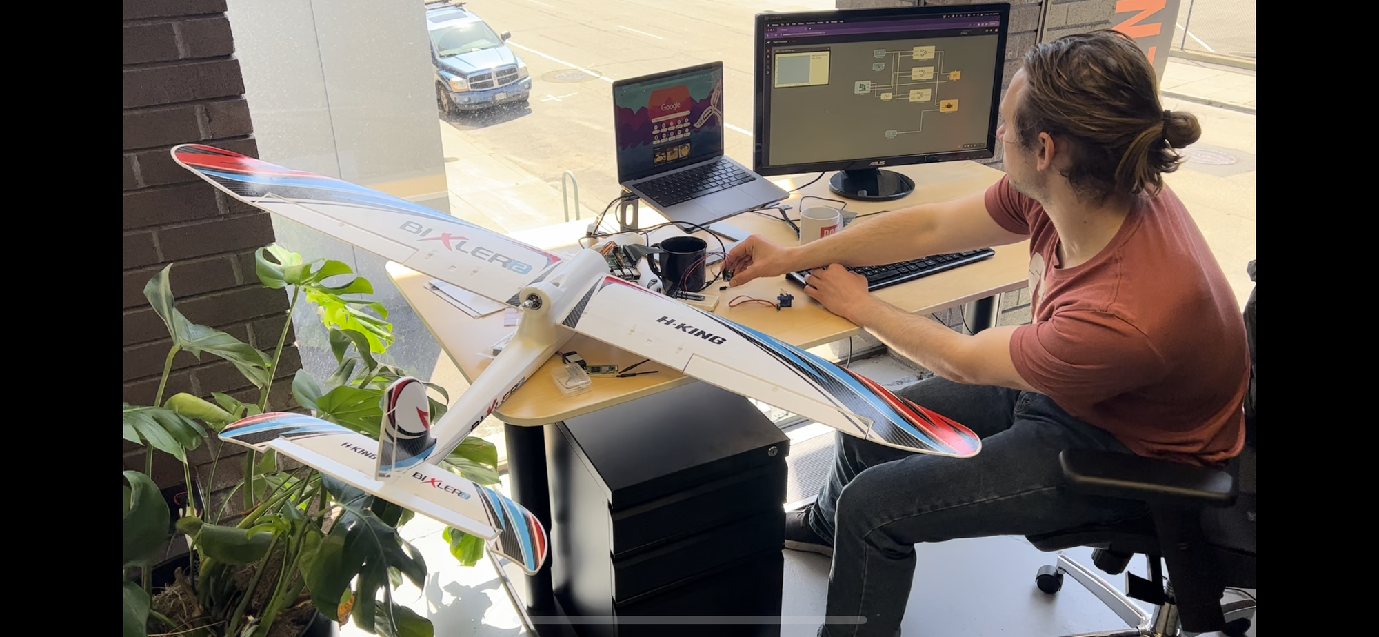 Since the RaspberryPi Zero has a Wifi connection, we can wireless deploy software from Pictorus in the browser to the aircraft on our lab bench. Making sure to disconnect the propeller (safety third!), we then power the system and can experiment to verify our software is behaving as expected.