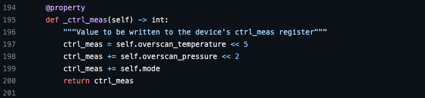 Note that the value 0x37 was calculated following the math in the BME280 library Python snippet shown below: