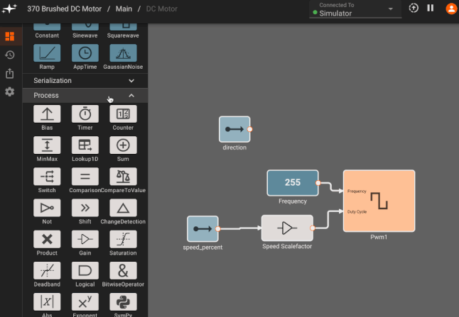 - PWM Block to command motor speed