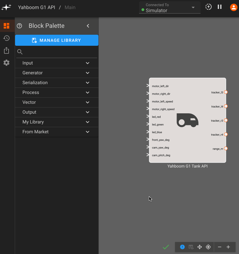 To illustrate creating a new component from scratch, we're going to use the Yahboom G1 Tank as our hardware platform. The component we build here will be available on the public marketplace (for free), so you can incorporate it into your own Yahboom projects.
