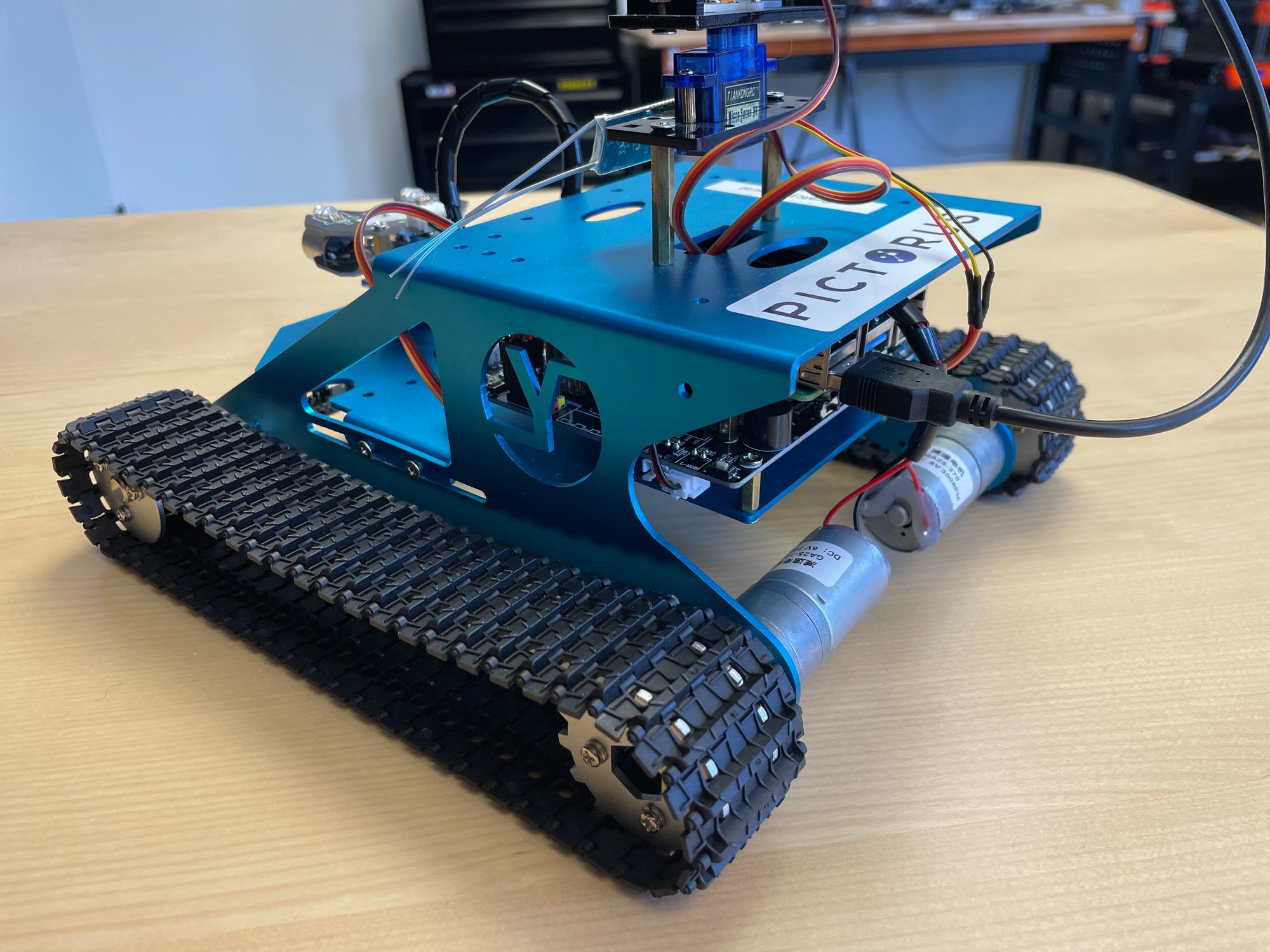 The Yahboom G1 Tank is a great entry-level robotics platform. You can buy them from Amazon relatively cheaply, they take an hour or two to assemble, they're not made entirely of cheap plastic, and best of all, they ship with a single board computer (Jetson or Rasberry Pi) we can sync to Pictorus!